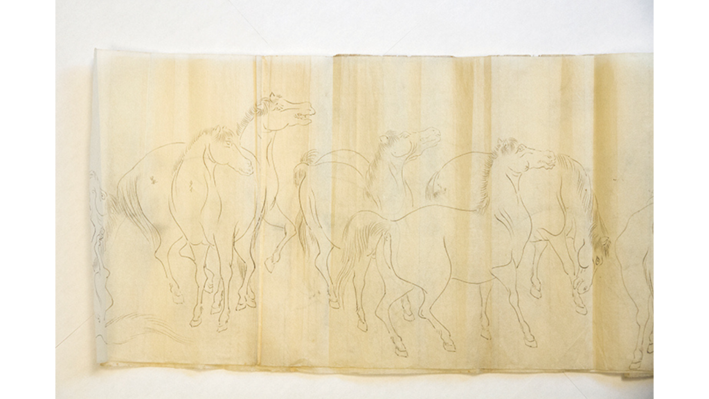 「柄をなぞるとかそのまま写すのではなく、新しい紙に見ながら描きました。師匠や先輩方は何も教えてくれない。とにかく同じように描けるようになるまでひたすら写経のように、師匠達の仕事の準備をする合間や寝る前に描いた。友禅の世界には学ぶという言葉はありません。常に師匠や先輩の仕事を見ながら、その技やコツを盗んでいく。職人の世界はどこもそうですよ。」