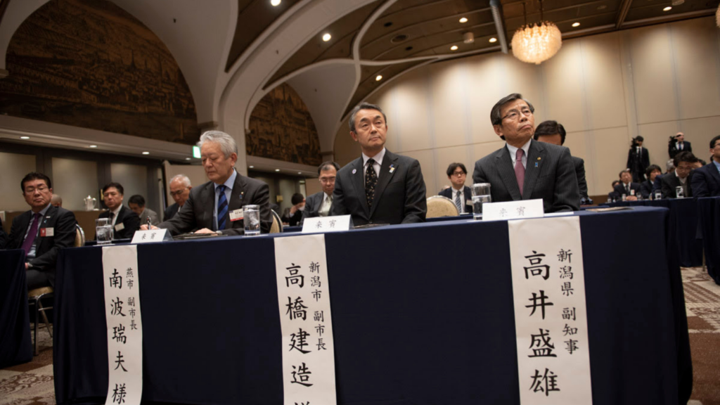 第1部の講演会では、玉川堂 玉川さまが「産業観光都市」をテーマに講演を行う予定でございましたが、体調不良のため、講演途中で降壇する運びとなりました。玉川さまは体調不良の中、お帰りになる最後の最後まで再登壇を希望し、講演できなかったことを心から悔み、『皆さまに申し訳ない』とのお言葉、また、終了後には、『お詫びのご連絡をまず第一に皆さまへ送らせて頂きたい』と頂き改めて、強い責任感と新潟に対する情熱、皆さまと共に成し遂げたい志(ビジョン)を感じた次第でございます。